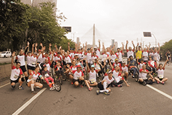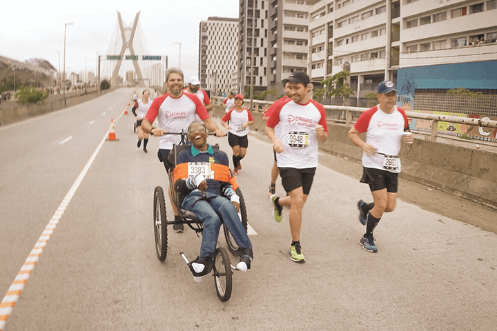Para que eles sintam a sensação de cruzar a linha de chegada, voluntários se cadastram e correm com eles. Em 2014, quando foi fundado, essa era a proposta.
