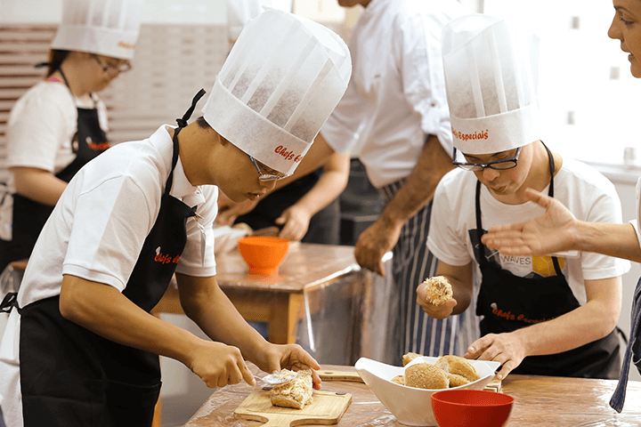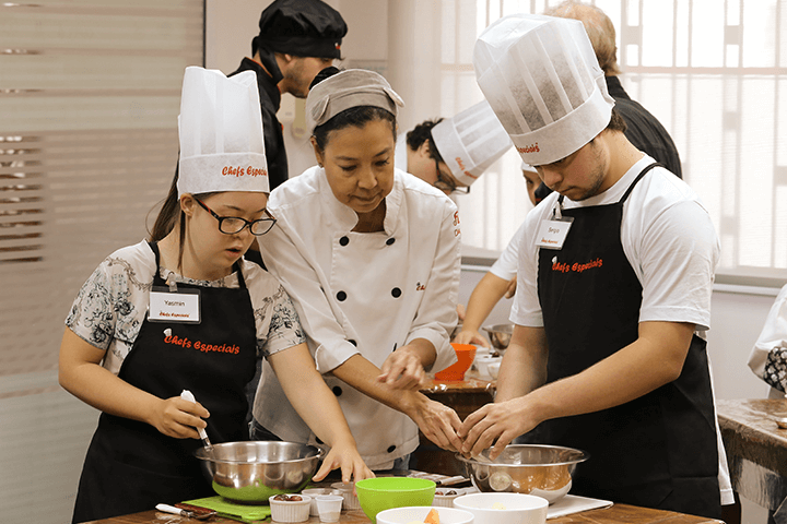 Com 12 anos de existência, o Instituto Chefs Especiais atende 300 alunos por ano e tem como principal objetivo conquistar a autonomia deles para que não se sintam tão dependentes de outras pessoas quando os seus pais falecerem. Para isso, o instituto oferece cursos de gastronomia com todos os termos técnicos. Assim, eles também ficam aptos e preparados para o mercado de trabalho.